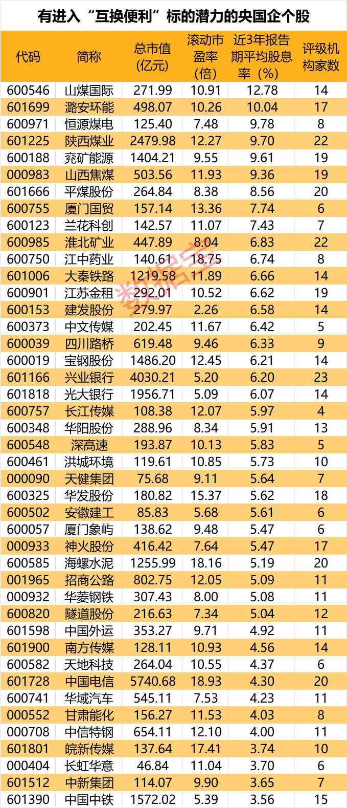中字头等高股息资产可能是机构开展互换便利的首选。
