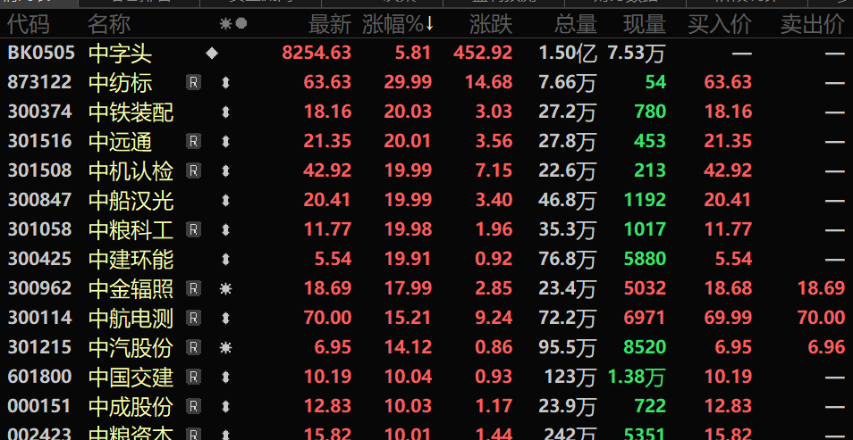 昨日,“中字头”个股掀起涨停潮,中国中铁、中国铁建、中国建筑等10余股涨停。