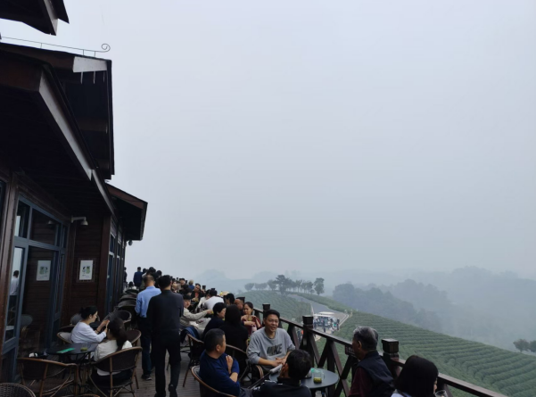大河财立方记者在信阳文新茶村看到,5万亩生态茶园基地已成为集餐饮、住宿、茶文化观光等功能于一体的融合发展园区。即便是工作日,茶园里的观景台也座无虚席。