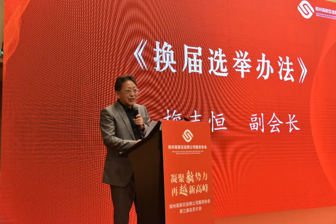 10月25日下午,郑州高新区挂牌公司服务协会第三届会员大会在高新区假日酒店二楼会议室顺利召开,百余家会员单位代表参加会议并选举产生了新一届理事会和监事会,北京普惠正通投资有限公司副董事长张善正当选新一届会长。大会由协会秘书长乔帅主持。