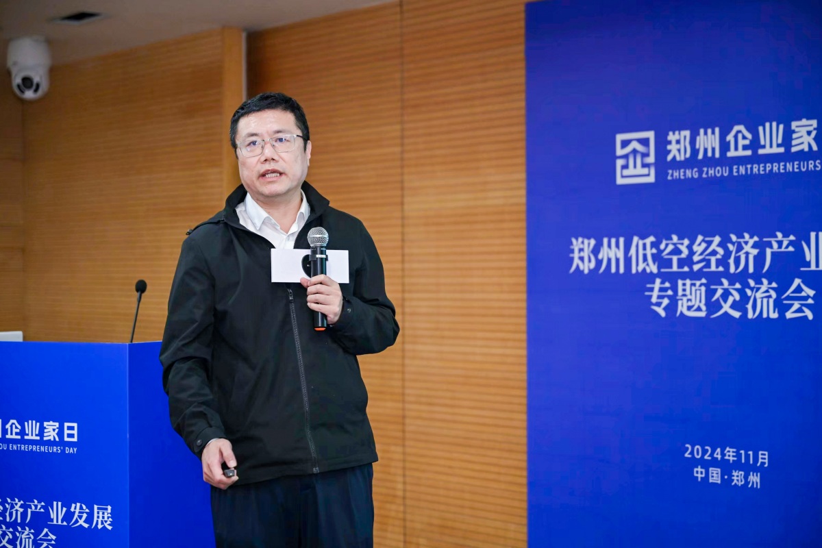 交流会上,郑州航空工业管理学院经济学院院长、教授郝爱民做了题为《低空经济新质生产力发展挑战及实践路径》的主题演讲。他从低空经济与新质生产力的概念出发,深入剖析了低空经济作为战略性新兴产业的重要性和发展潜力。