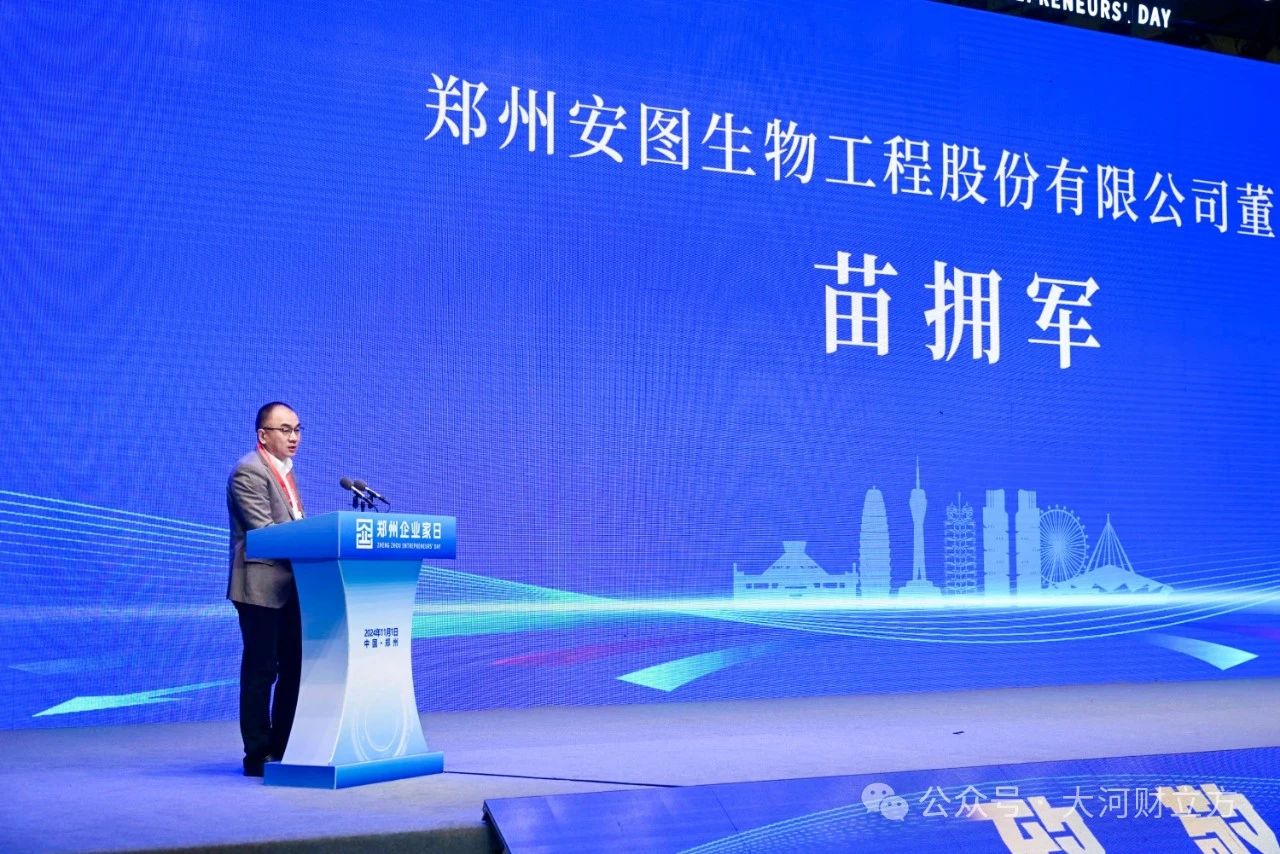 随后,郑州安图生物工程股份有限公司董事长苗拥军代表郑州企业家发言。