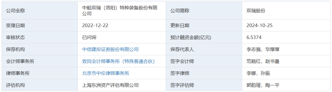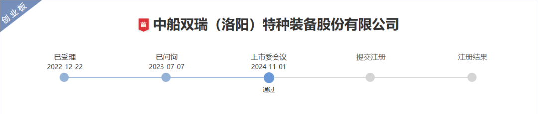 11月1日,深交所上市审核委员会召开2024年第19次上市审核委员会审议会议,审议通过了中船双瑞(洛阳)特种装备股份有限公司(以下简称双瑞股份)IPO申请。