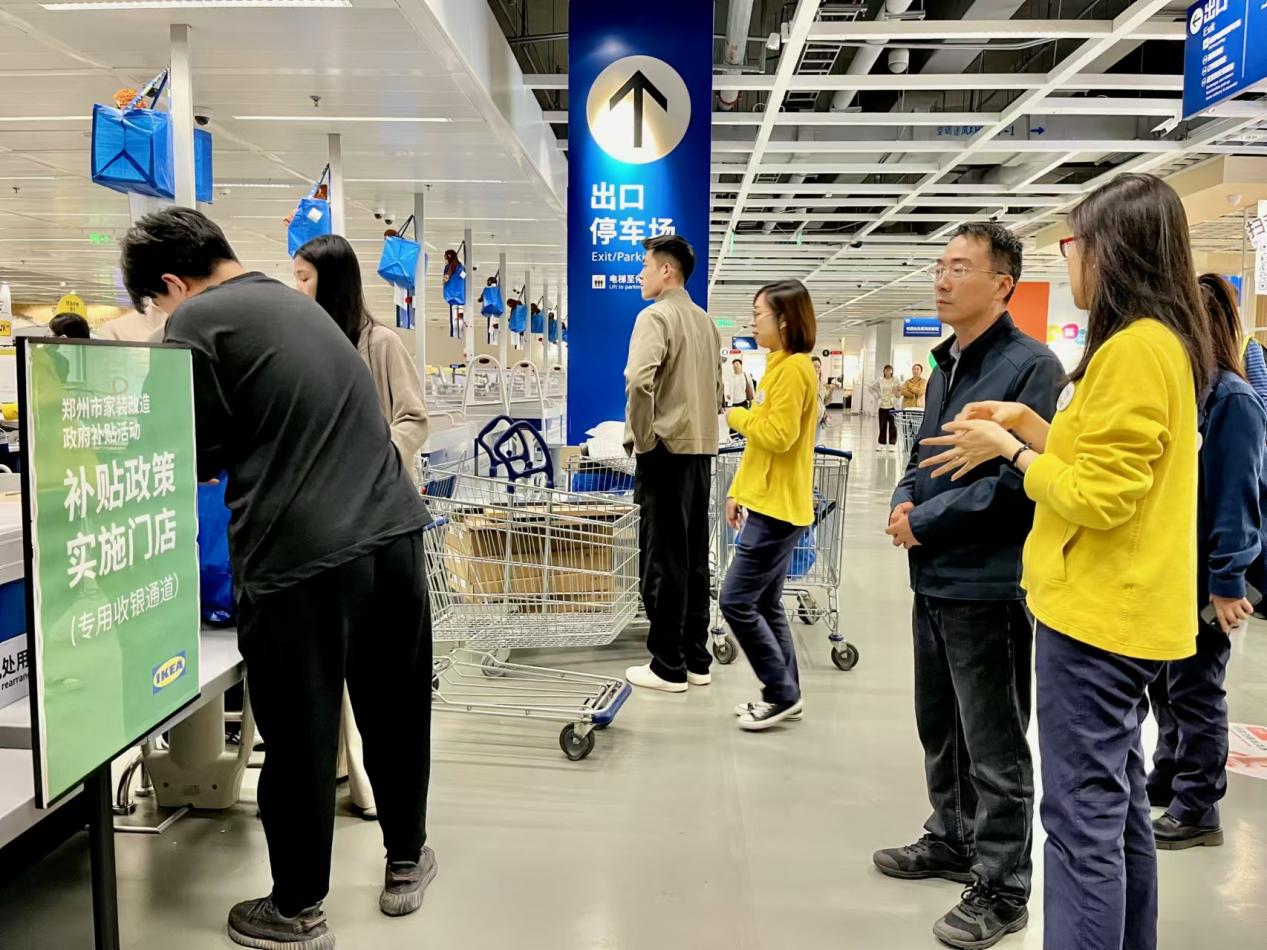“年底孩子要结婚,前段时间刚把房子装修完,马上要选购家具进驻。我算了算,今天选购的家具申请补贴后,能省2000多块钱。”在宜家家居郑州商场,与家人一道选购家具的武先生说。