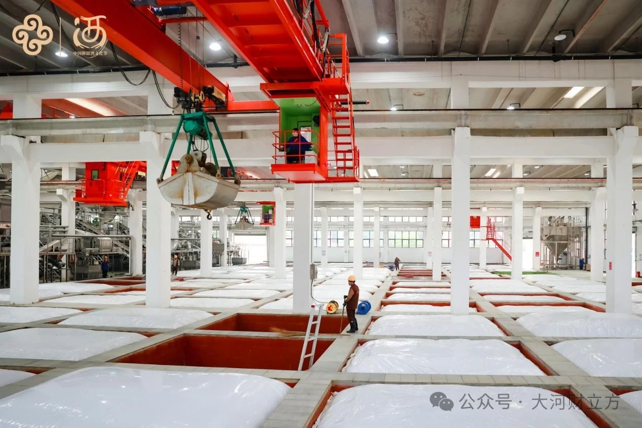 大河财立方记者现场了解到,该车间在沿袭传统酿造工艺的基础上,引进了“全自动装甑机器人系统、在线数据采集控制系统、自动分级分段摘酒系统”等国内领先技术和设备,最大程度实现了装甑、蒸馏、摘酒、摊晾工序的自动化、数字化。