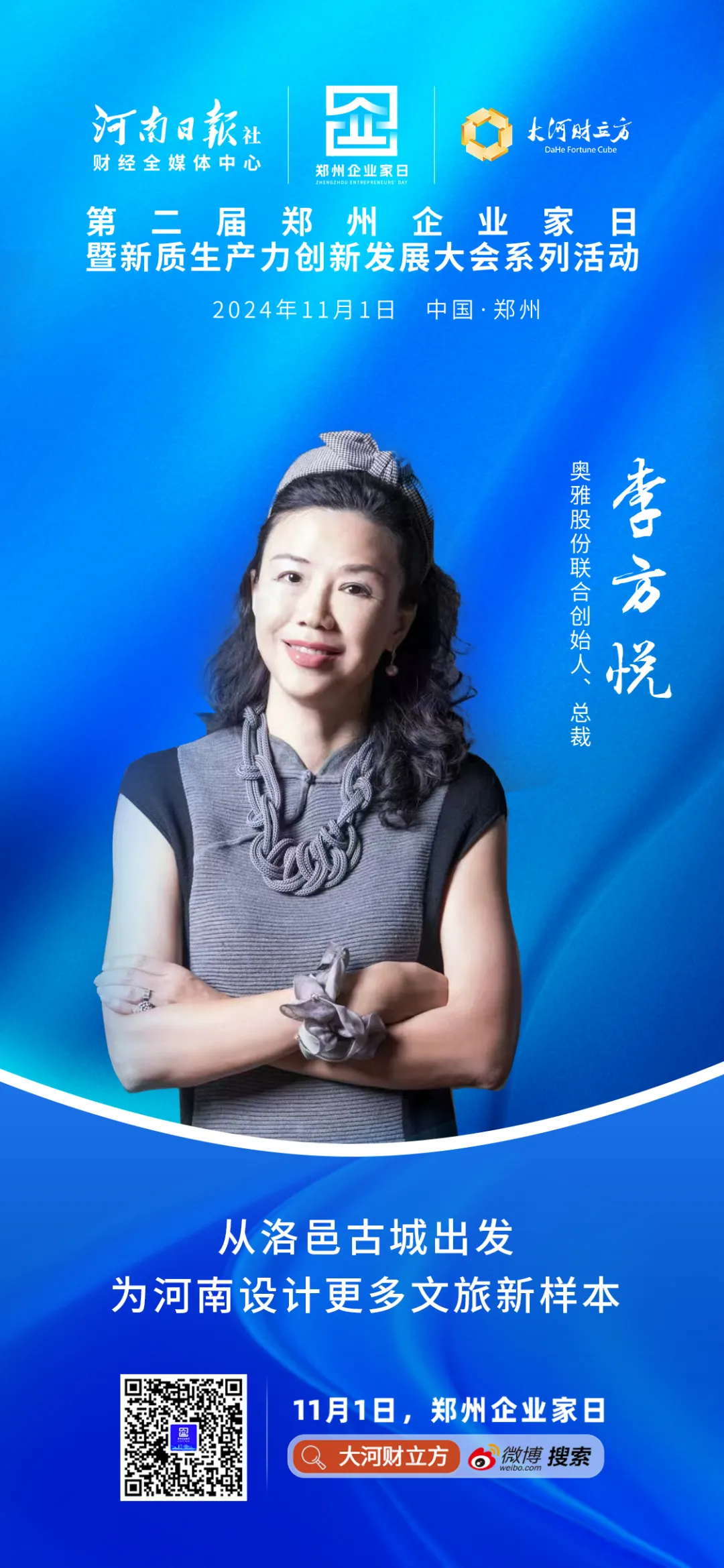 在11月1日郑州企业家日这一天,李方悦站在郑州国际会展中心的展板旁,生动地介绍着活动的背景与亮点,而她的随行摄影则默契地捕捉每一个精彩瞬间。