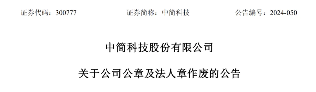 与此同时,中简科技的另一则公告则表示,近期,因经营层保管不利,遗失中简科技公司公章及法定代表人章各一枚。现均声明作废。