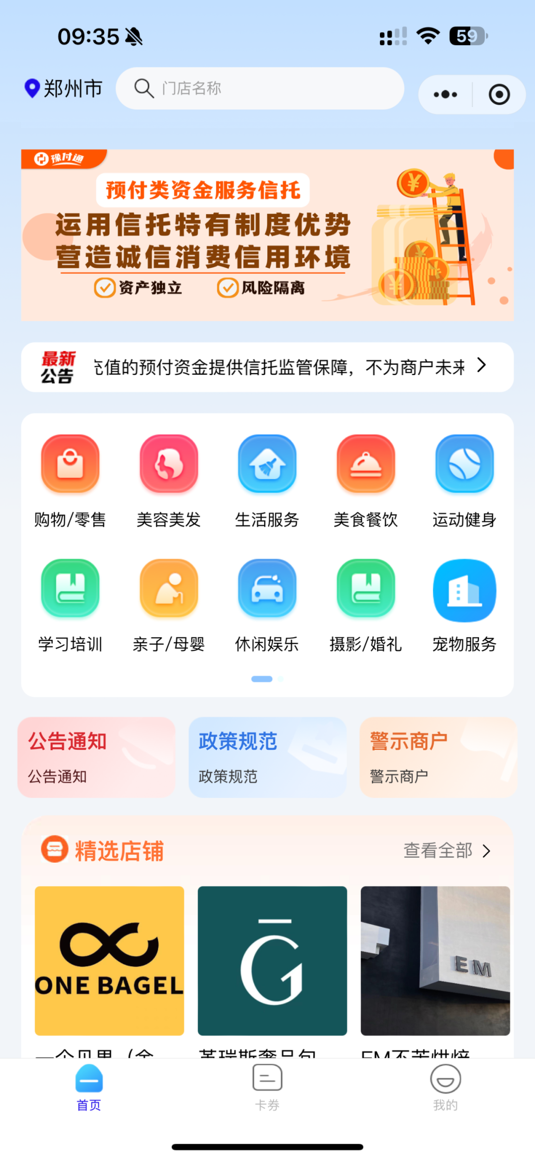 “豫付通”是中原信托开发的预付类资金监管小程序,集各场景下预付类资金充值消费、卡券管理等功能于一体,而且受到信托独有的隔离机制保护,旨在协助政府保护消费者预付资金安全、树立商户诚信经营形象,促进预付消费市场发展。