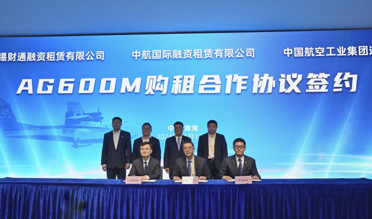 同日,中航通用飞机有限责任公司与中航国际融资租赁有限公司、无锡财通融资租赁有限公司等签署6架AG600M购/租合作协议。