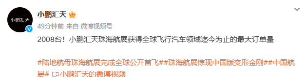 【大河财立方消息】11月13日,小鹏汇天在社交媒体发布消息称,“陆地航母”中国航展批量预订超2000台,小鹏汇天获得全球飞行汽车领域迄今为止的最大订单量,签约的新订单共计2008台。