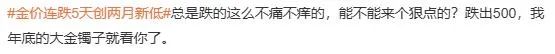 记者注意到,黄金连续下跌,已经成为社交媒体上热门话题,有投资者趁机“抄底”,有消费者选择继续观望。