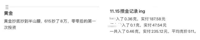 社交媒体上,有“00后”网友表示“第一次投资,黄金抄底”。也有网友晒出自己购买金豆的记录。