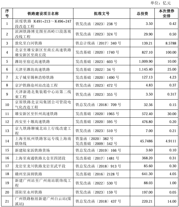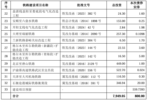 2024年度中国铁路建设债券募集资金拟用于铁路建设项目情况如下: