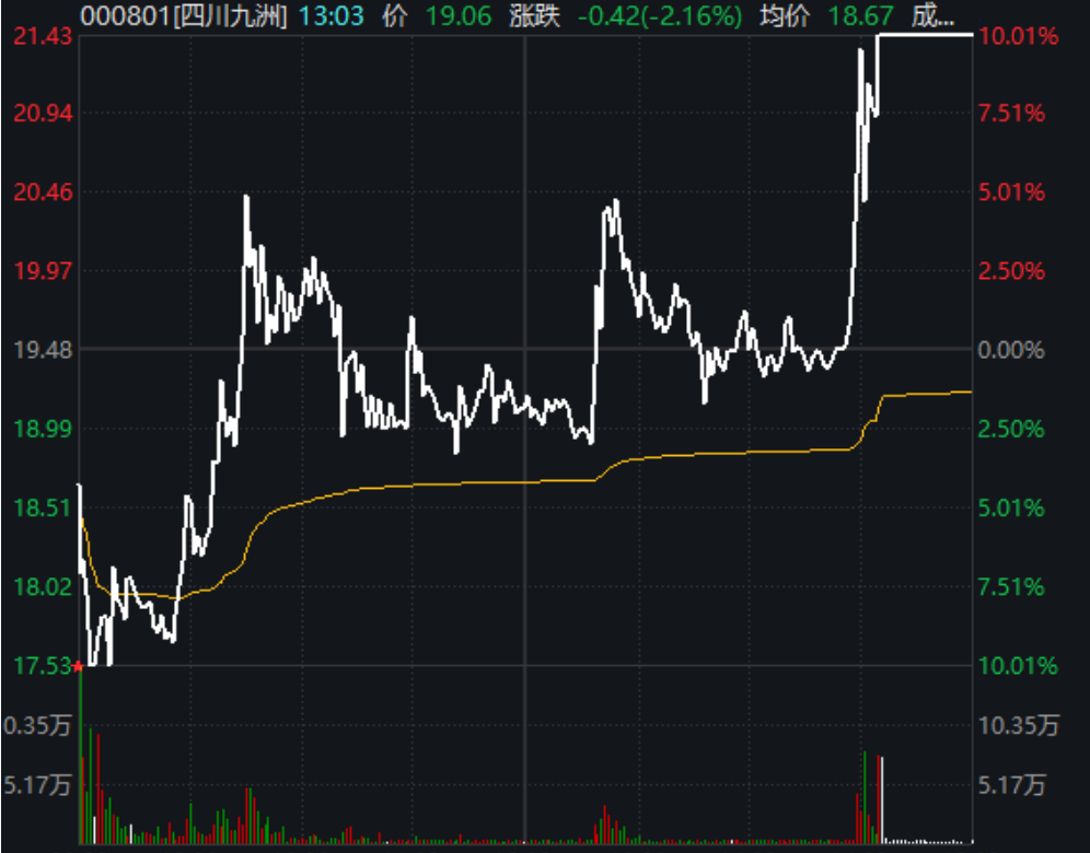 低空经济概念人气股四川九洲午后触及涨停上演“地天板”,成交额超45亿元。该股此前5连板,早盘一度触及跌停。
