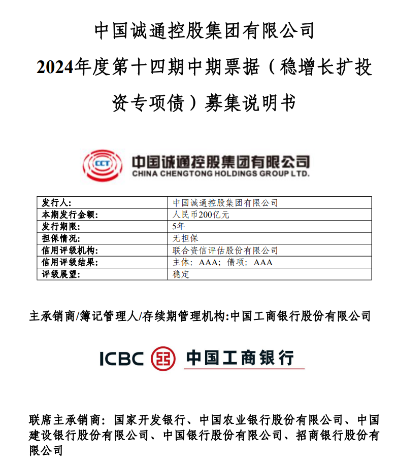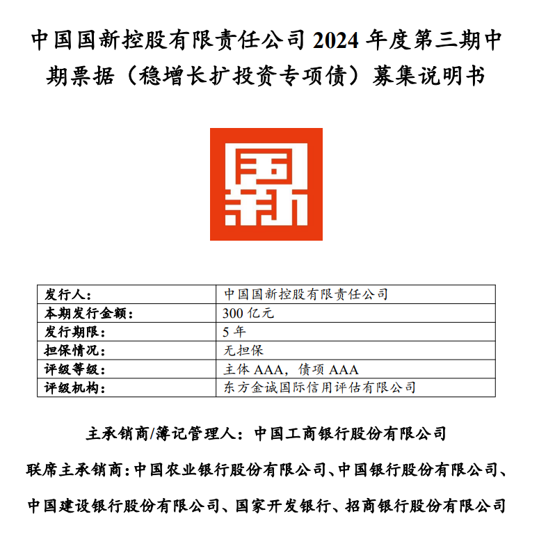 【大河财立方消息】11月25日,中国诚通控股集团有限公司、中国国新控股有限责任公司两大央企相继披露中期票据(稳增长扩投资专项债)募集说明书。