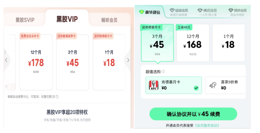 记者查询QQ音乐、网易云音乐会员页面注意到,当前两个平台的单季会员价格均为45元/月,去年涨价前QQ会员的单季价格为35元/月。