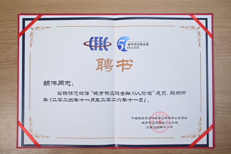 【大河财立方 记者 杨萨 文 冉衡 摄影】11月27日,“第十二届(2024)中国商业保理行业峰会暨第十一届于家堡保理论坛”在天津举行。开幕式现场,“城市供应链金融50人论坛”正式揭牌。河南大河财立方商业保理有限公司(以下简称财立方保理)常务副总经理胡伟受邀担任“城市供应链金融50人论坛”成员。