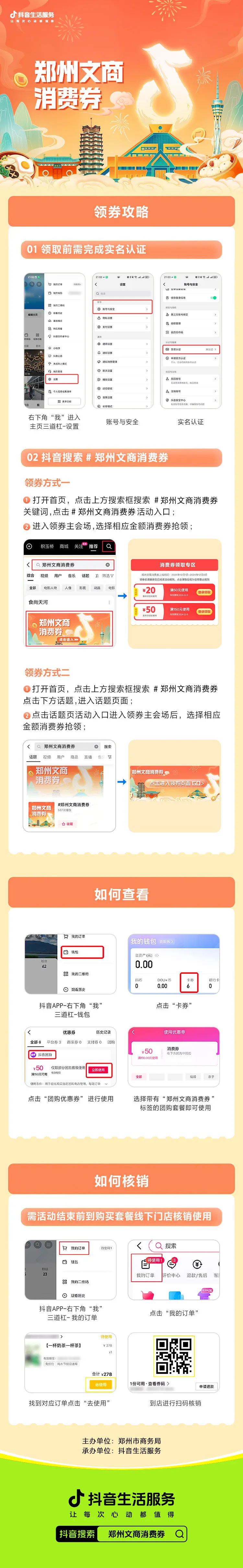 线下消费券可在郑州市域内的餐饮、零售、住宿、电影等消费场景使用,商家须支持支付宝付款方式。线上消费券可在抖音服务的郑州商家(餐饮、零售、住宿、电影)使用。