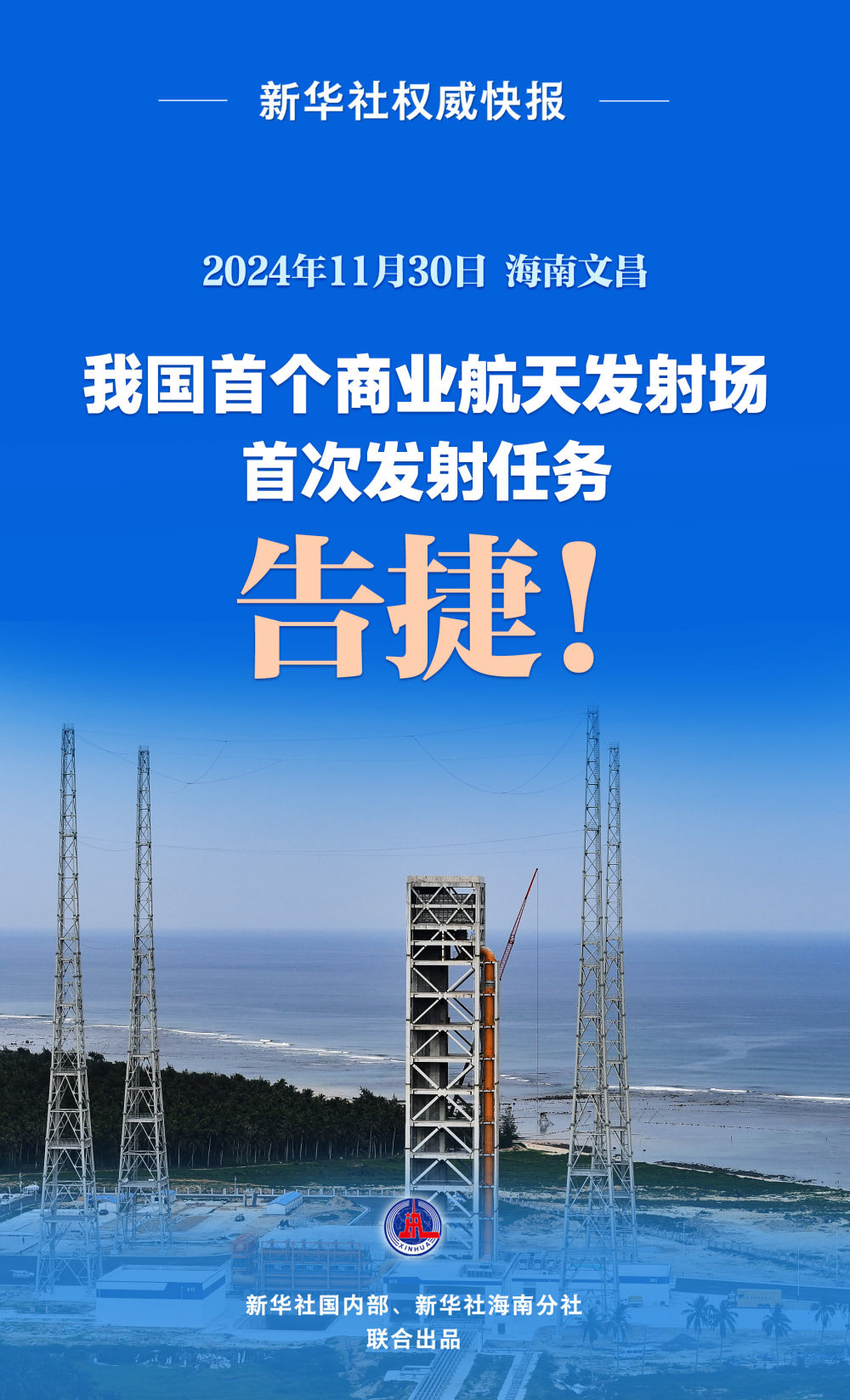 11月30日晚间,长征十二号运载火箭在海南商业航天发射场点火起飞,随后,火箭顺利将卫星互联网技术试验卫星、技术试验卫星03星送入预定轨道,我国首个商业航天发射场首次发射任务告捷。
