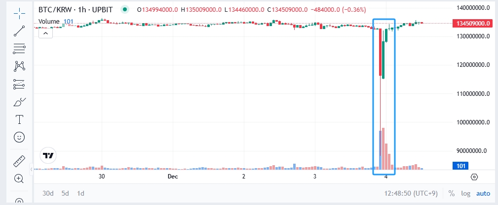 12月3日,因韩国政界突发事件,加密货币波动明显。
