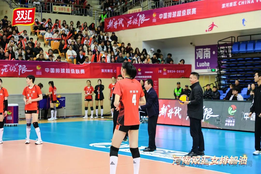 11月5日,在本赛季河南双汇女排的首场主场比赛中,双汇集团营销管理副总裁郭云龙出席并参与了开球仪式,在为河南双汇女排亲自加油助阵的同时,还为获胜队员准备了丰盛的双汇大礼包。