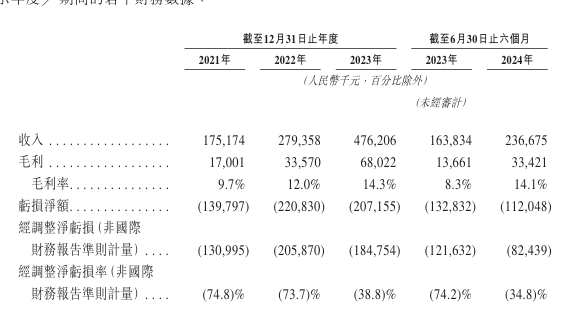 虽然佑驾创新营收和毛利率均在增长,但利润依旧处于亏损状态。2021年至2023年,佑驾创新经调整净亏损分别为1.31亿元、2.06亿元、1.85亿元;2024年上半年其经调整净亏损为0.82亿元,较去年同期减亏3919万元。