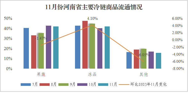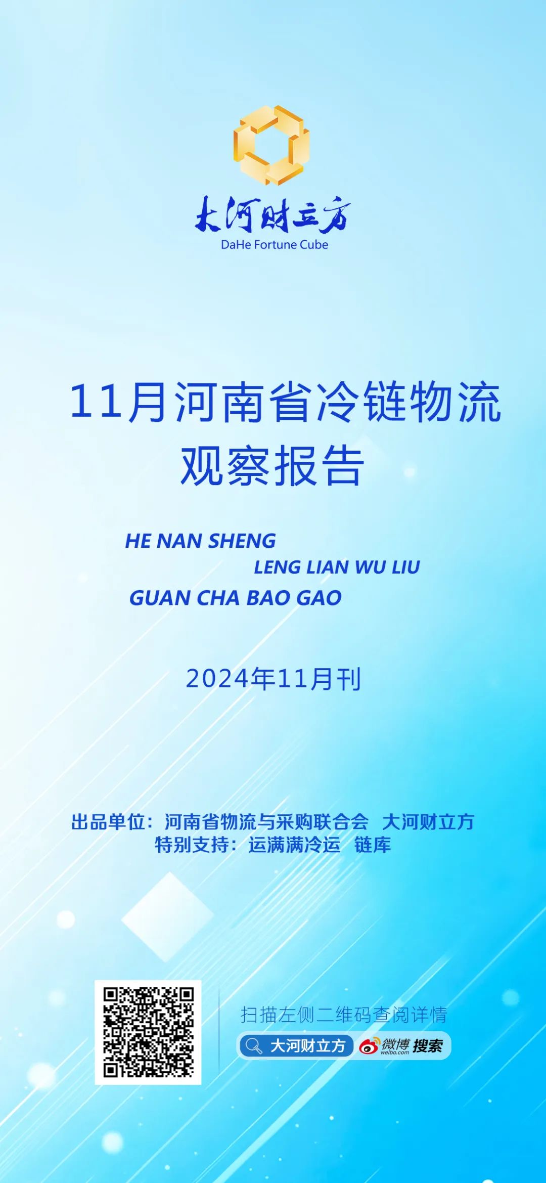 【大河财立方 记者 丁洋涛】12月12日,由河南省物流与采购联合会、大河财立方联合推出的河南省冷链物流观察报告11月刊出炉。总体来看,11月份的4周内,冷链物流运价和去年同比降幅最高达13.47%。11月,河南果蔬冷链商品主要包括萝卜、香菇、白菜、芹菜、蒜苗、花菜等时令农产品,冻品冷链运输的市场份额较其他品类有所提升,环比增长4.1%。