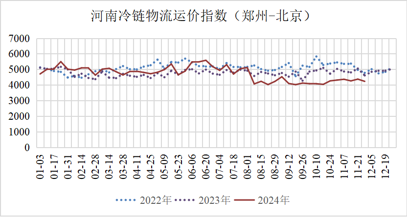 冷链物流运价指数,是判断冷链物流运输发展情况最直观的“晴雨表”。例如,以郑州至北京的冷链物流车为例,11月第三周(18日~24日)周平均指数4371.43元/车,较上周上升113.41元/车、升幅2.66%;比去年同期下降680.72元/车、降幅13.47%。11月第四周(11月25日~12月1日)周平均指数4228.57元/车,较上周下降142.86元/车、降幅3.27%;比去年同期下降380.26元/车、降幅8.25%。