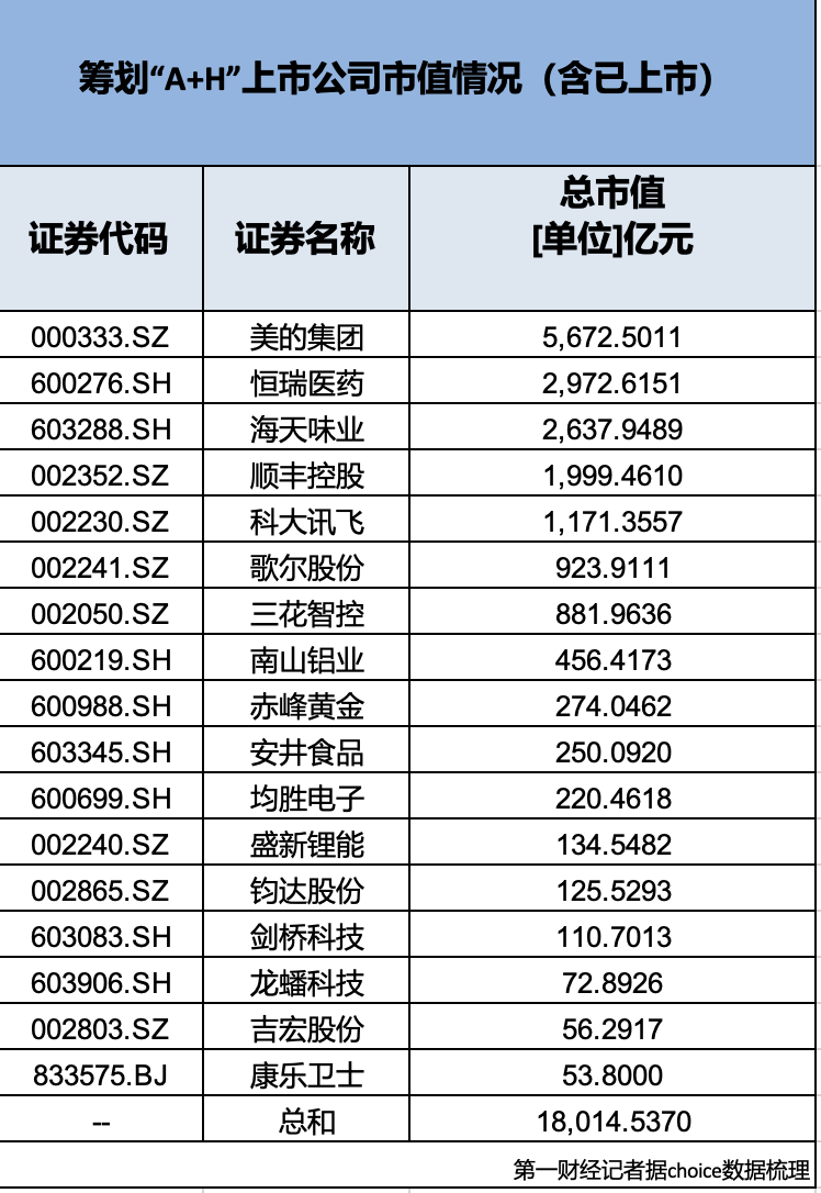 今年港股的“含A量”还在提升,据第一财经初步统计,年内已有三花智控、海天味业、恒瑞医药等19家上市公司,筹划整体或分拆子公司赴港上市。