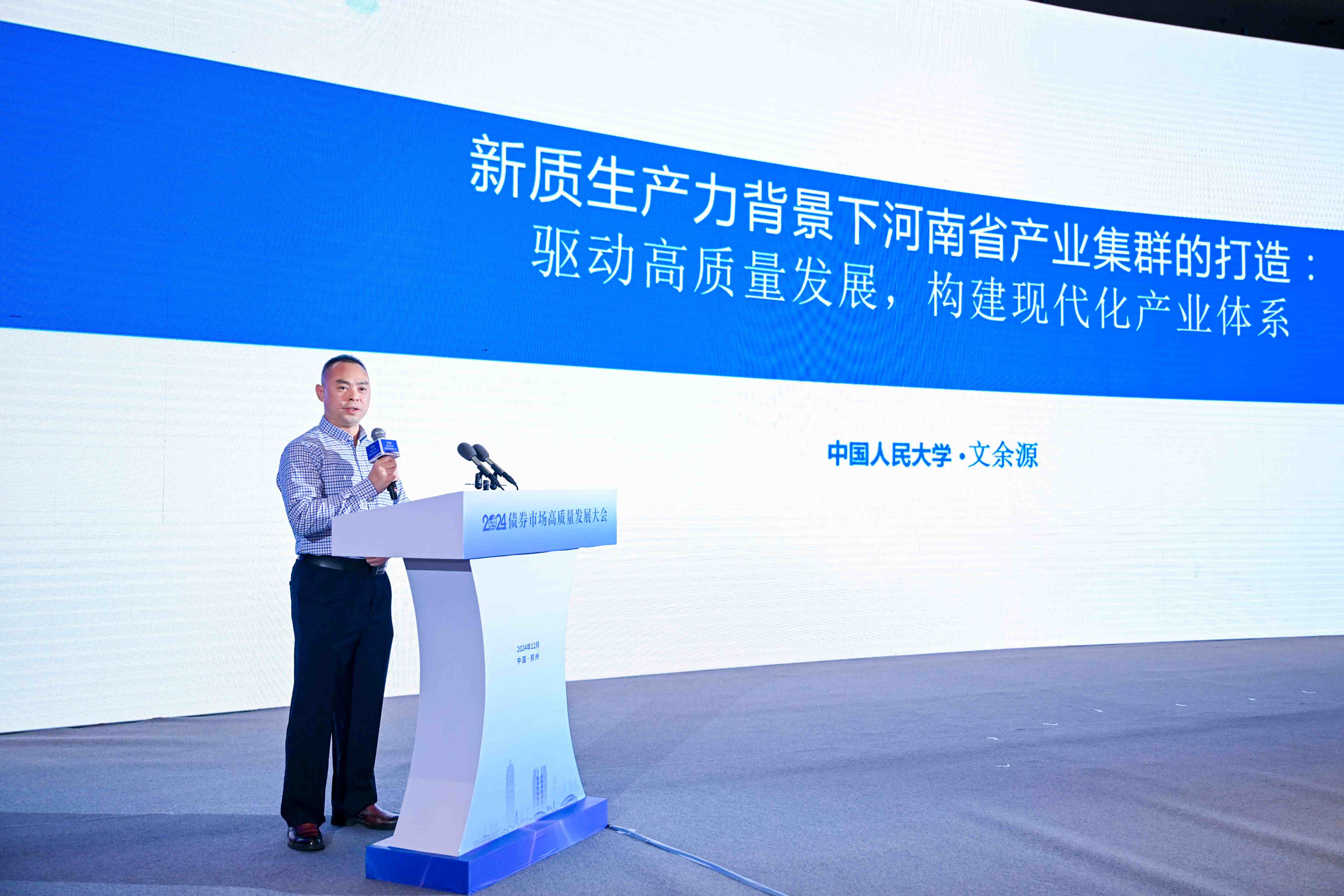 12月19日下午,2024债券市场高质量发展大会的首场活动——“产业化转型和存量资产盘活”专场在郑州市举办。中国人民大学应用经济学院教授、博士生导师文余源在活动中发表了题为《新质生产力背景下河南省产业集群的打造:驱动高质量发展,构建现代化产业体系》的演讲,为河南省的产业集群发展提供了新思路和方向。