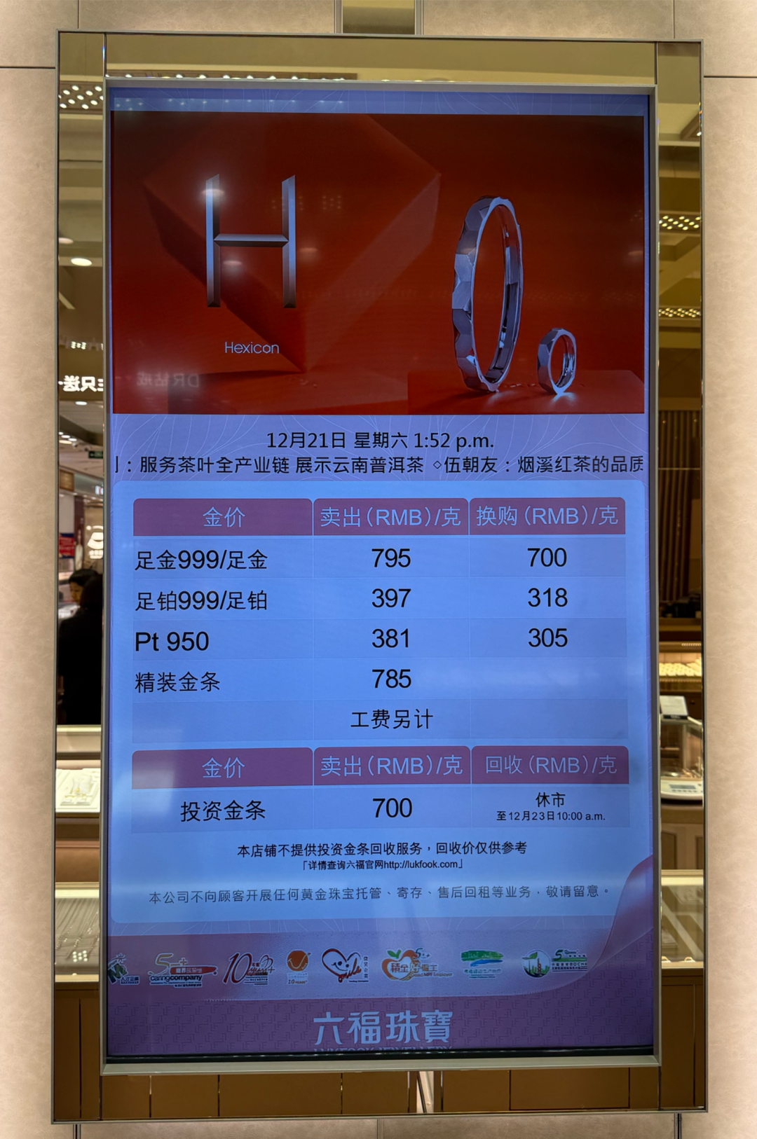 12月21日,基金君实地走访发现,目前足金价格仍在800元/克附近徘徊,同时,金店顾客明显增多。