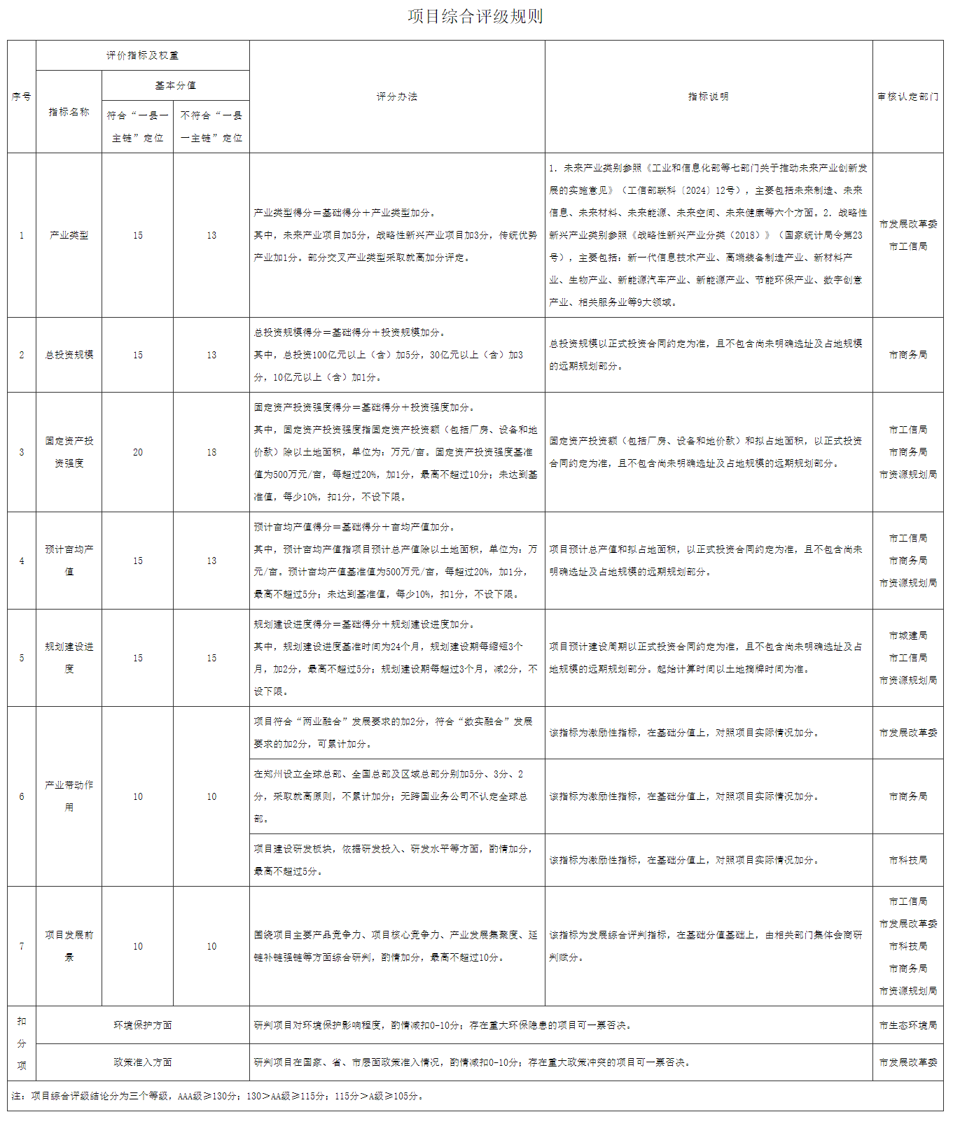 其中提到,综合考虑产业结构优化升级、强链补链、资源要素高效利用、技术创新、环境保护等因素,对市内建成区的工业项目进行多维度、综合性评价,评价等级由高到低划分为AAA级、AA级和A级。