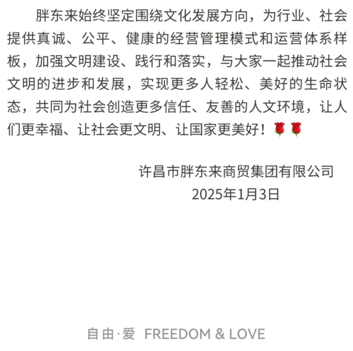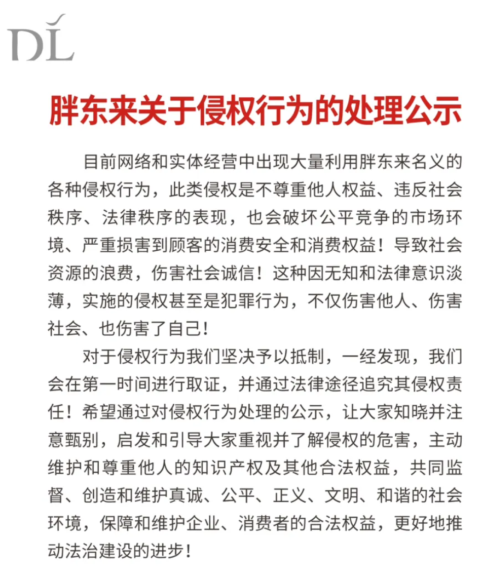 【大河财立方消息】1月3日,胖东来发布关于侵权行为的处理公示。