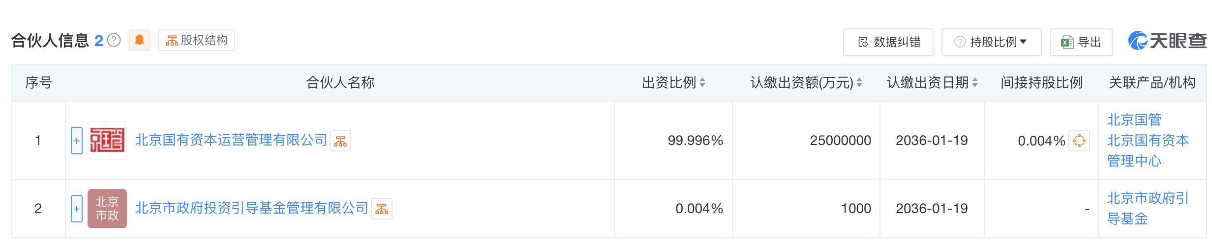 据悉,北京市政府投资引导基金(有限合伙)成立于2016年1月19日,北京国有资本运营管理有限公司、北京市政府投资引导基金管理有限公司对其出资比例分别为99.996%、0.004%。