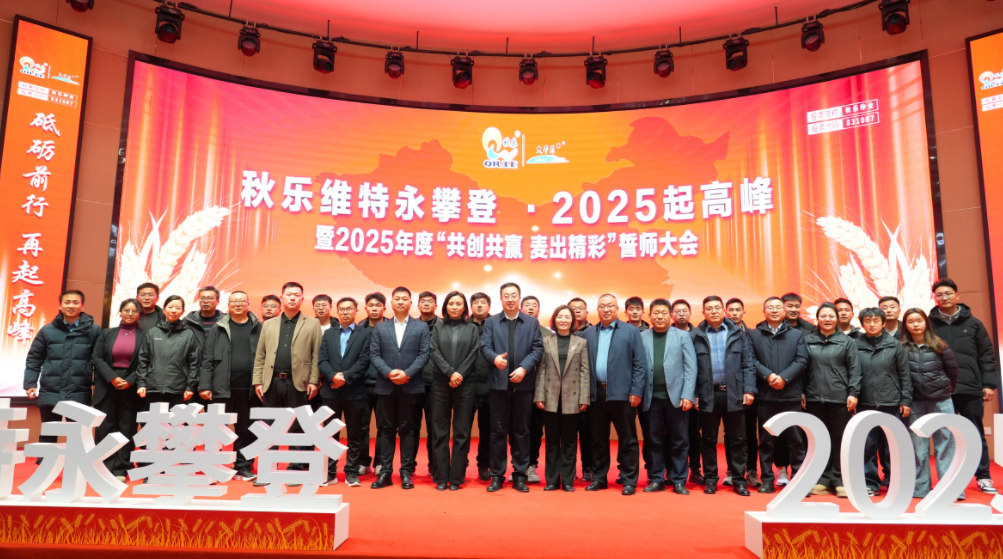 1月6日,河南秋乐种业及子公司河南维特在新乡隆重举行了以“秋乐维特永攀登 2025起高峰”为主题的年度“共创共赢•麦出精彩”誓师大会。来自各县的小麦品种合作伙伴,总计约400人,共同见证了这一振奋人心的时刻。