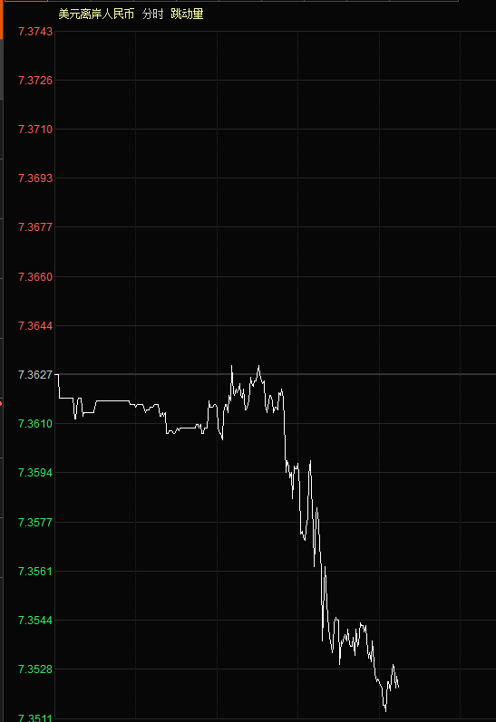 截至10:15,离岸人民币对美元汇率报7.3519元,较前一交易日收盘价涨108个基点。