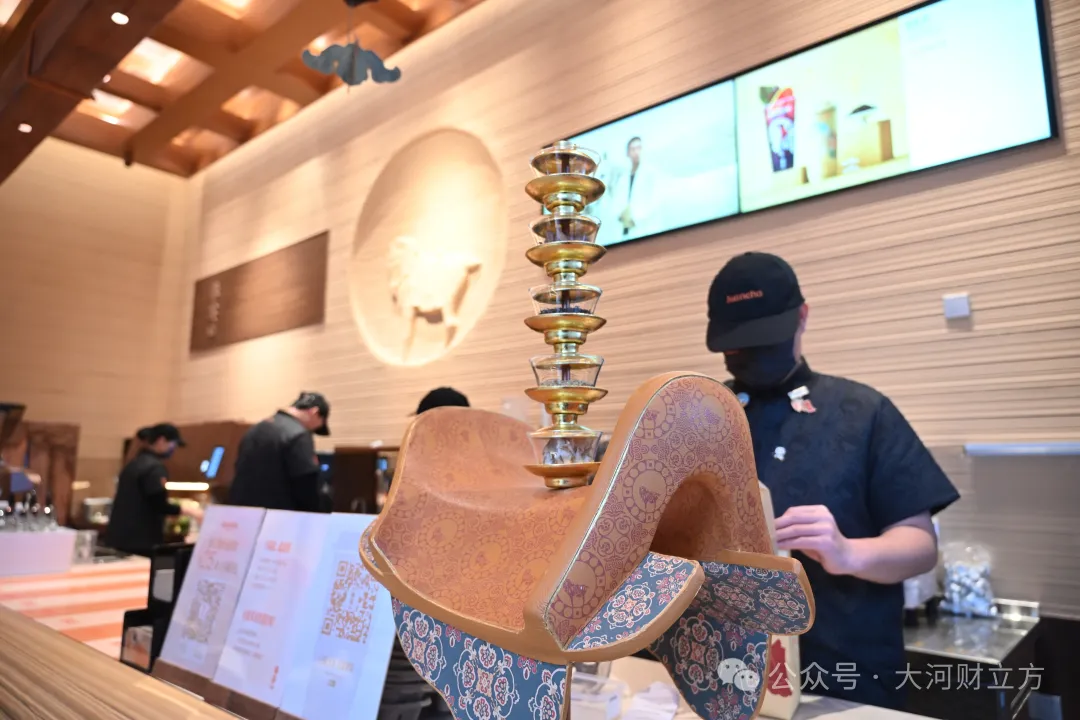 “从郑州熙地港第一家店的时候,我们就用了活字印刷盘、龙柱等一些跟中国文化相关的元素,去打造产品与品牌。”惠海丰介绍。