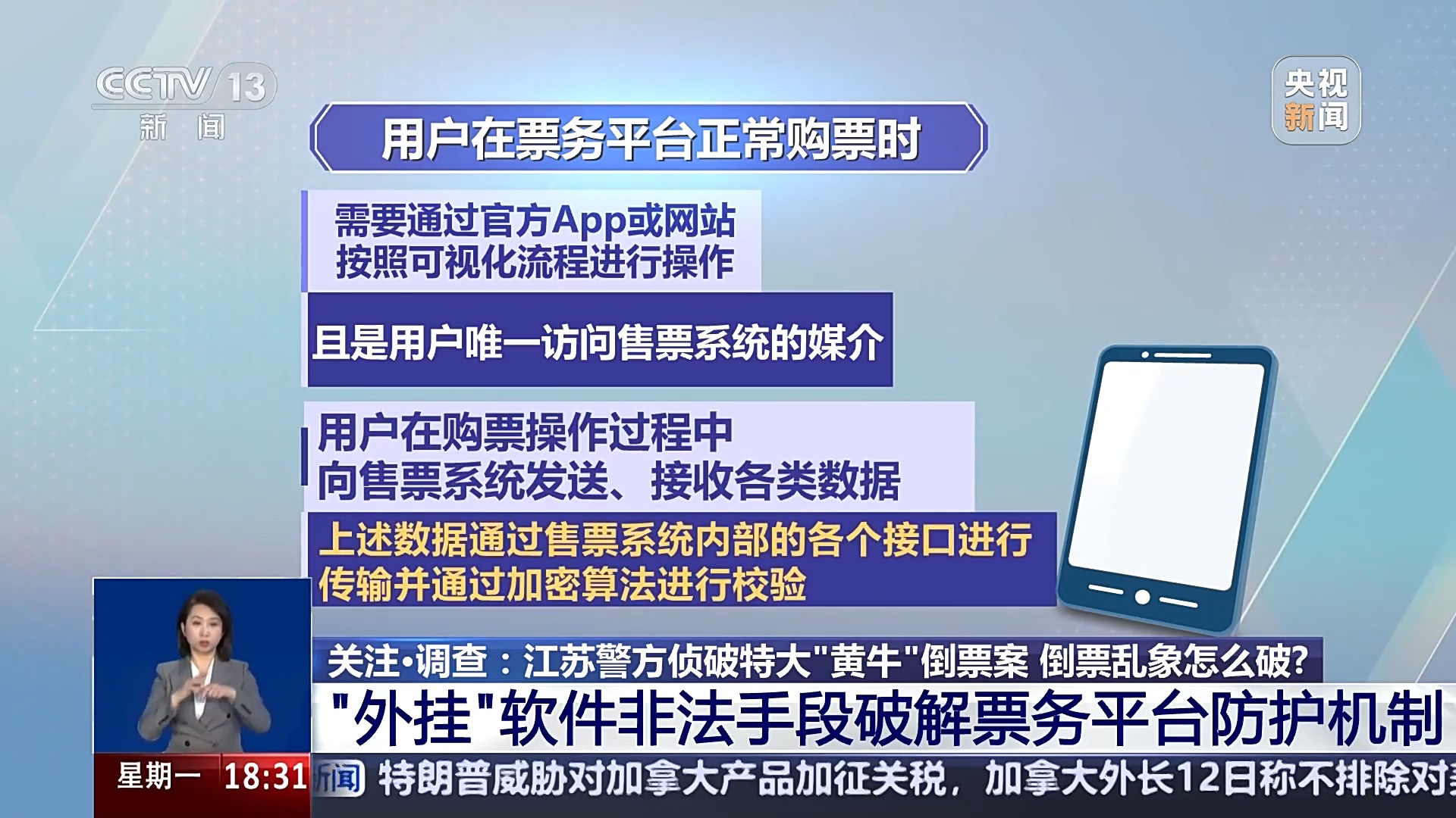镇江市公安局京口分局网安大队大队长 周强:平台防控不到位致使“黄牛”滥用技术手段。当前大量“外挂”软件都是利用伪装官方请求、绕过人机验证识别机制等技术实现抢票,反映出售票系统存在大量漏洞且封堵滞后。修复技术漏洞、确保真人购票,需要增加成本投入,票务平台或对相关漏洞“视而不见”,致使“黄牛”滥用技术手段。