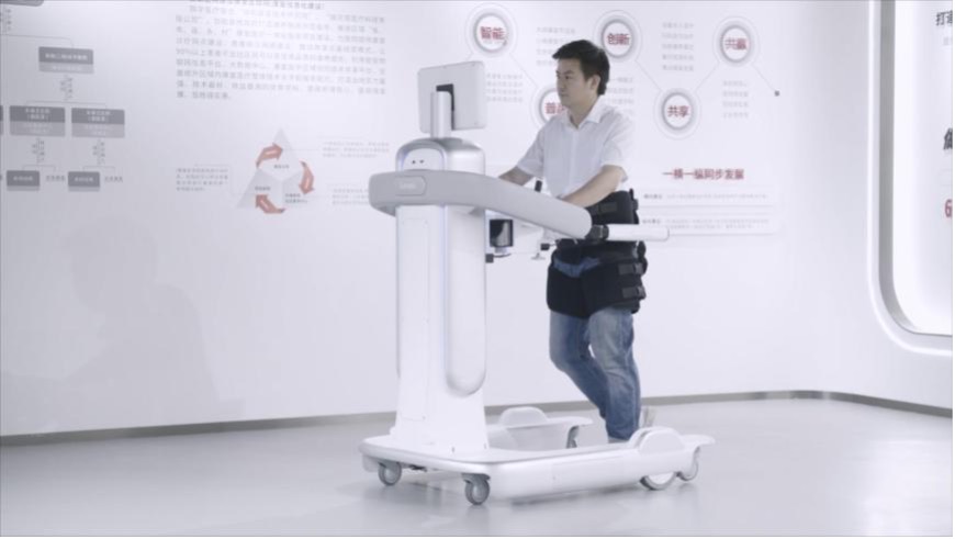 智能辅助行走机器人是翔宇医疗研发的一款用于步行、坐站和平衡训练的康复机器人。其主要功能是,通过传感器技术和智能算法,了解并实现用户的运动意图,在这个过程中,帮助用户减轻自身重力,逐渐增加用户下肢力量和关节活动度。