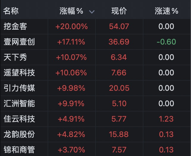 【大河财立方 记者 王宁宁】1月16日早盘,小红书概念股持续活跃,天下秀、遥望科技、引力传媒晋级三连板,大河财立方记者获悉,上述公司与小红书都有密切合作。