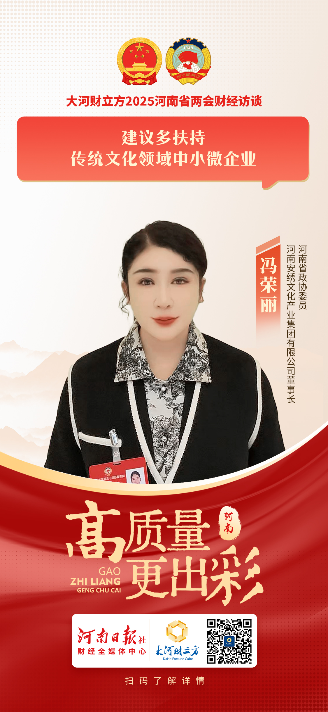 【大河财立方 记者 程帅星】文化类小微企业投入周期长,在发展过程中面临诸多难题。2025年河南省“两会”期间,省政协委员、河南安绣文化产业集团有限公司董事长冯荣丽带来“发展传统文化产业助力美丽乡村建设”的提案。