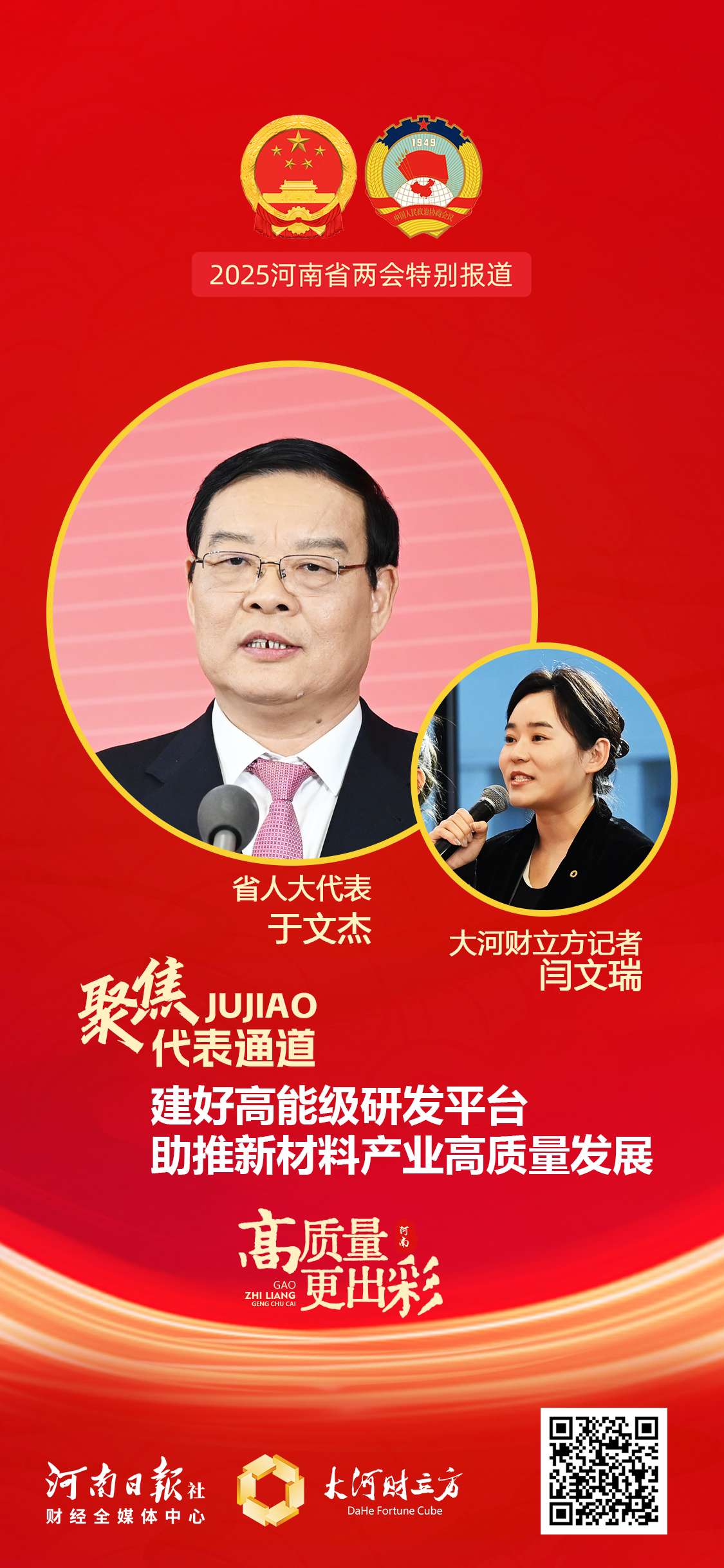 【大河财立方 记者 闫文瑞 文 冉衡 摄影】在河南推进新型工业化进程中,新材料产业作为重点打造的万亿级产业集群,如何通过技术创新,形成发展新优势、打开发展新空间,成为业内关注的焦点?1月18日,河南省人大十四届三次会议开幕前,“代表通道”集中采访活动在省人民会堂举行,大河财立方记者围绕上述问题,提问省人大代表、黎明化工研究设计院有限责任公司副总经理于文杰。