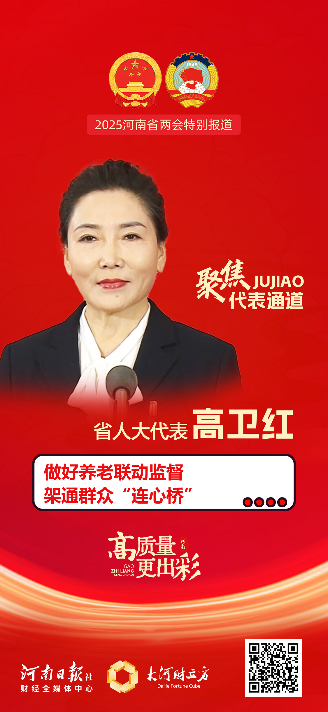 【大河财立方 记者 程帅星 文 冉衡 摄影】人大代表就像一座桥,一头连着党和政府,一头连着人民群众。1月18日上午,河南省十四届人大三次会议开幕前,“代表通道”集中采访活动在省人民会堂举行。省人大代表、濮阳职业技术学院人文学院教授高卫红分享了参与养老服务联动监督的几点感悟。
