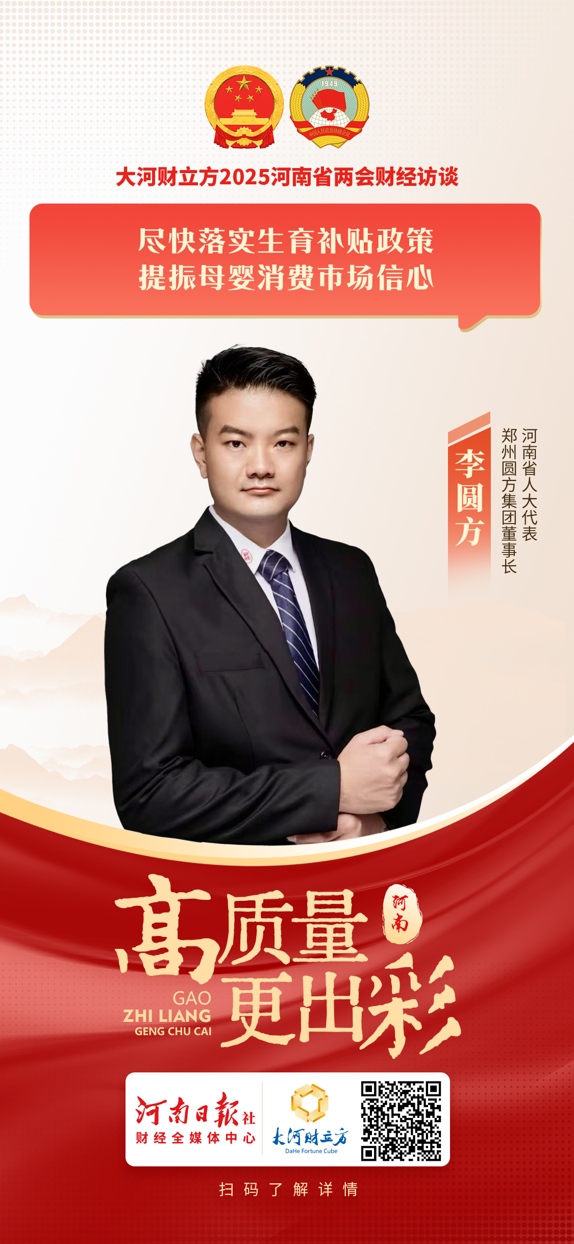 【大河财立方 记者 闫文瑞】在当前社会生育观念逐渐转变,生育主力从80后向90后过渡的背景下,就纾解生育、养育、教育等“三育”方面的痛点,积极营造生育友好社会环境这一议题,河南省人大代表、郑州圆方集团董事长李圆方于1月16日接受了大河财立方记者的采访。