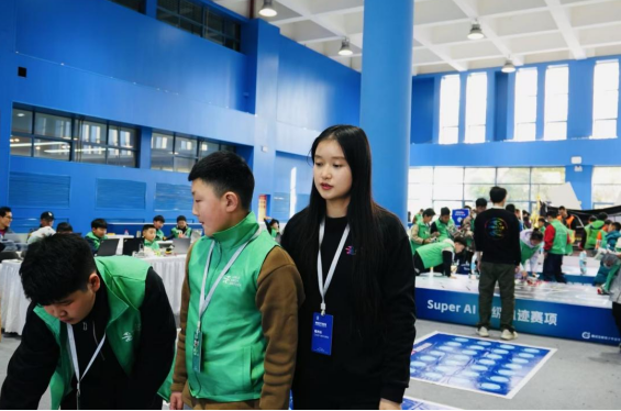 今天是2024世界机器人大赛总决赛的第三天,ENJOY AI系列赛项ENJOY AI运动会闭幕式的小学组比赛和Super Ai超级轨迹赛项超级轨迹赛中级星际穿越的小学高龄组比赛,在河南工业大学莲花街校区赛场热烈上演,郑竹兰就是赛场裁判之一。