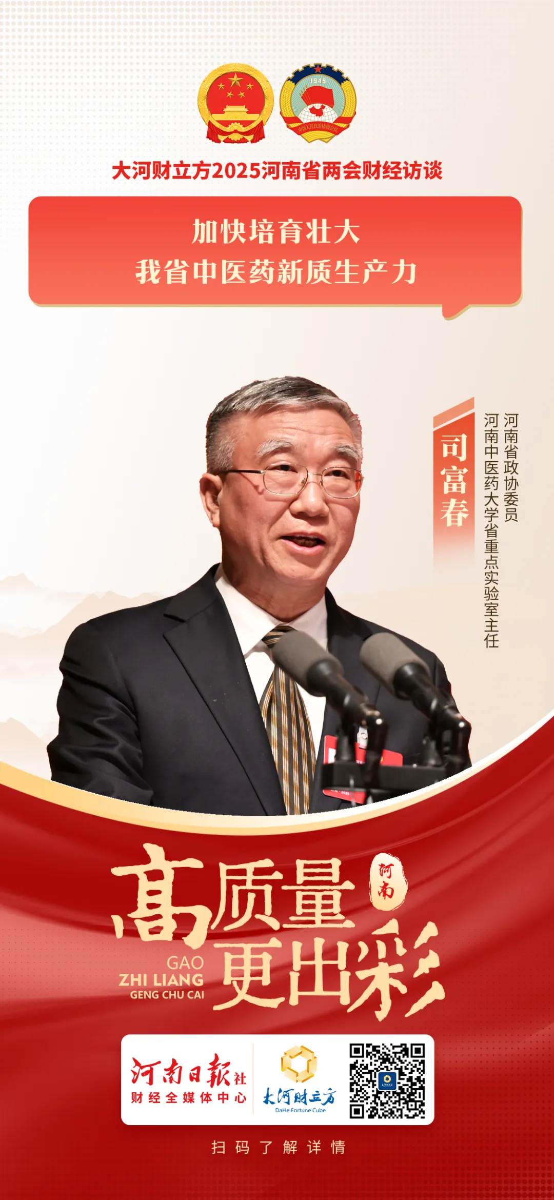 “中医药是新质生产力的‘富矿’,是河南一大特色优势,加快中医药创新发展是我省培育壮大新质生产力的重要着力点。”司富春称。