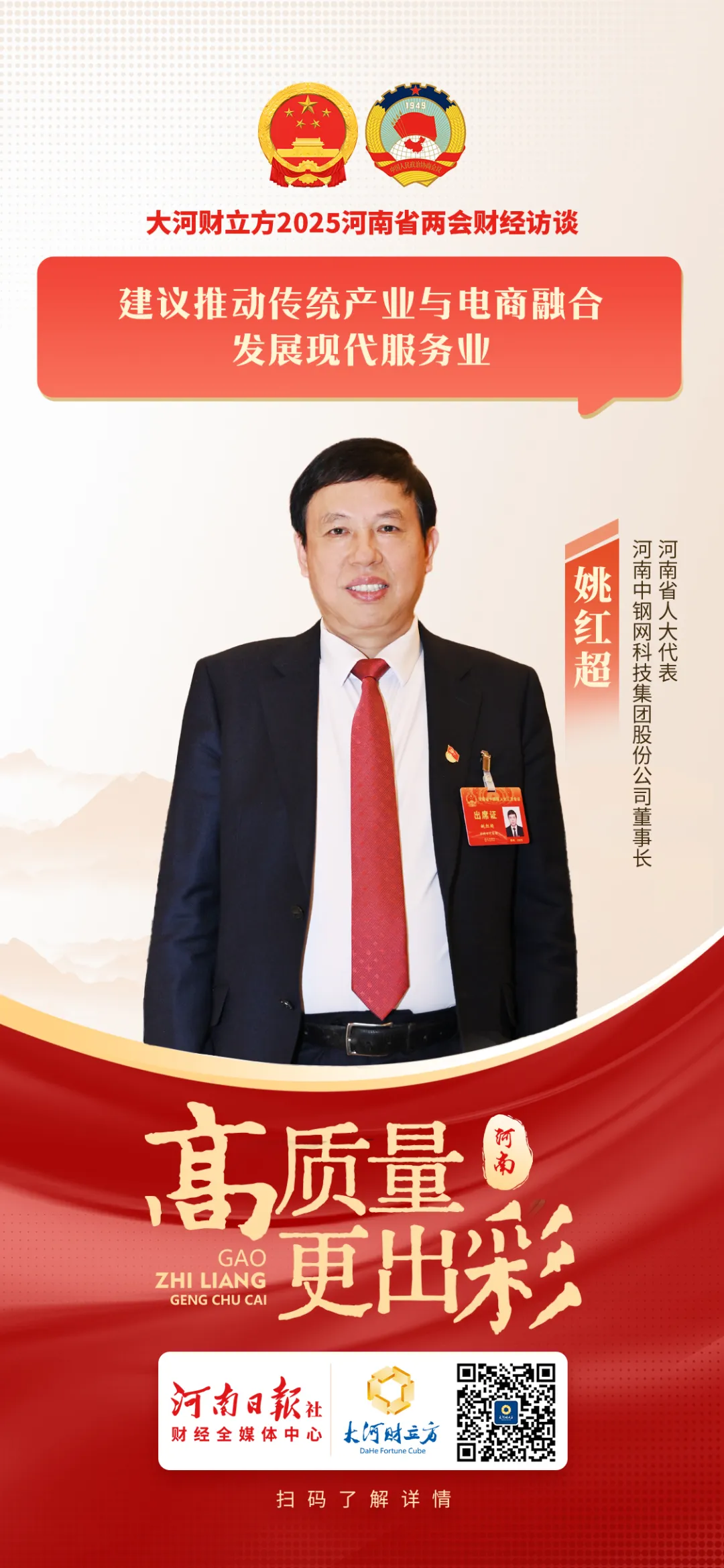 【大河财立方 记者 王磊彬 程帅星 文 马腾飞 摄影】2025年河南省政府工作报告提出,推动平台经济健康发展。省人大代表、河南中钢网科技集团股份公司(以下简称中钢网)董事长姚红超对此深有体会。他说,作为现代服务业的一种,平台经济在当前形势下具有独特的作用。