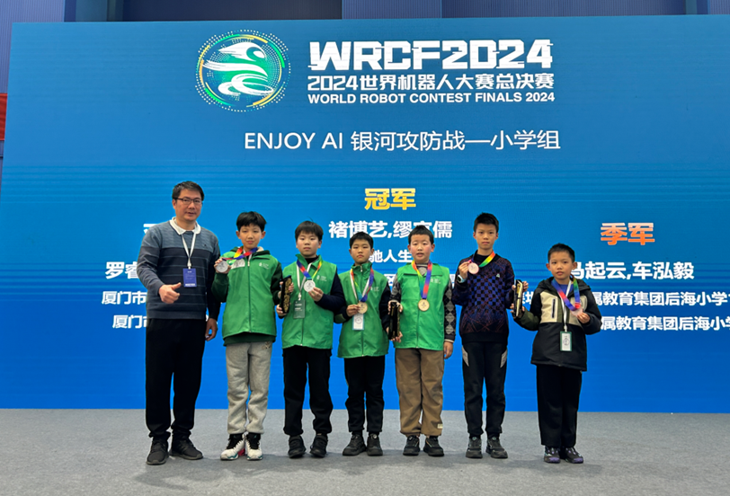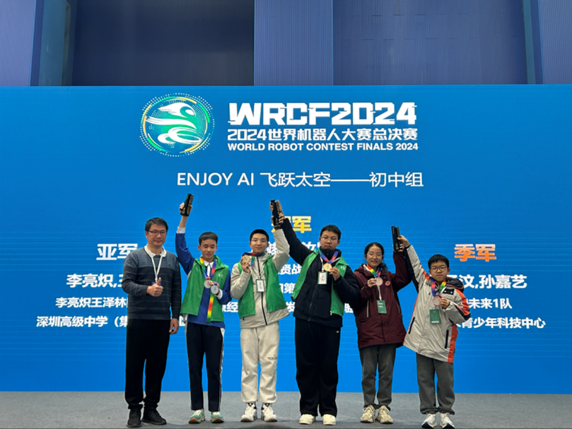ENJOY AI赛项中,来自重庆市九龙坡区的飞驰人生队获得“银河攻防战”小学组冠军,来自吉林的竣贤战队获得“飞跃太空”初中组冠军。
