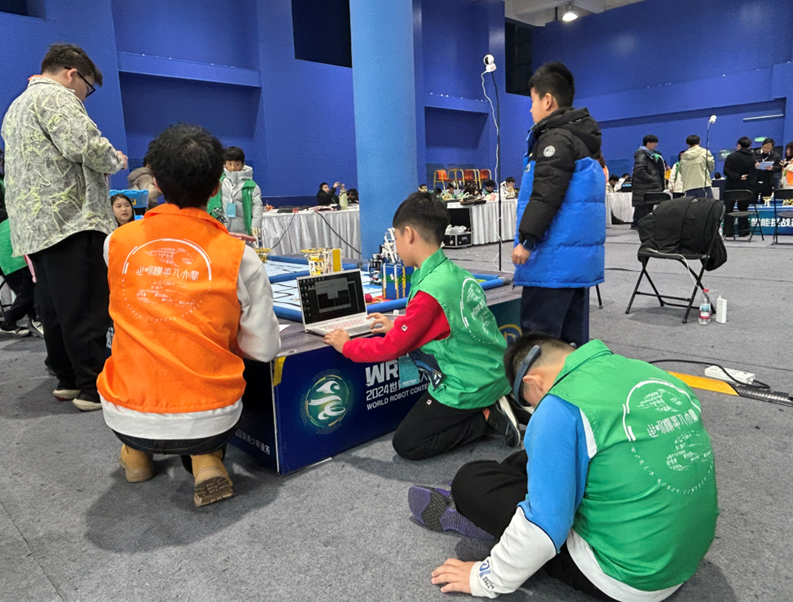 比赛过程中,记者观察到有小选手直接在赛场躺下或盘坐“休息”。据该赛事负责人介绍,这是获得“放松值”的一种方式。“未来之城”赛项是一个综合性的机器人对抗型比赛,采取1V1团队对抗形式,含智能传送与自动运输环节。选手需设计搭建资源运输车与传送机,通过脑控投射和小车搬运完成资源运输,发射资源至发射站以获得策略优势,融合了脑科学、人工智能、机械搭建等内容。
