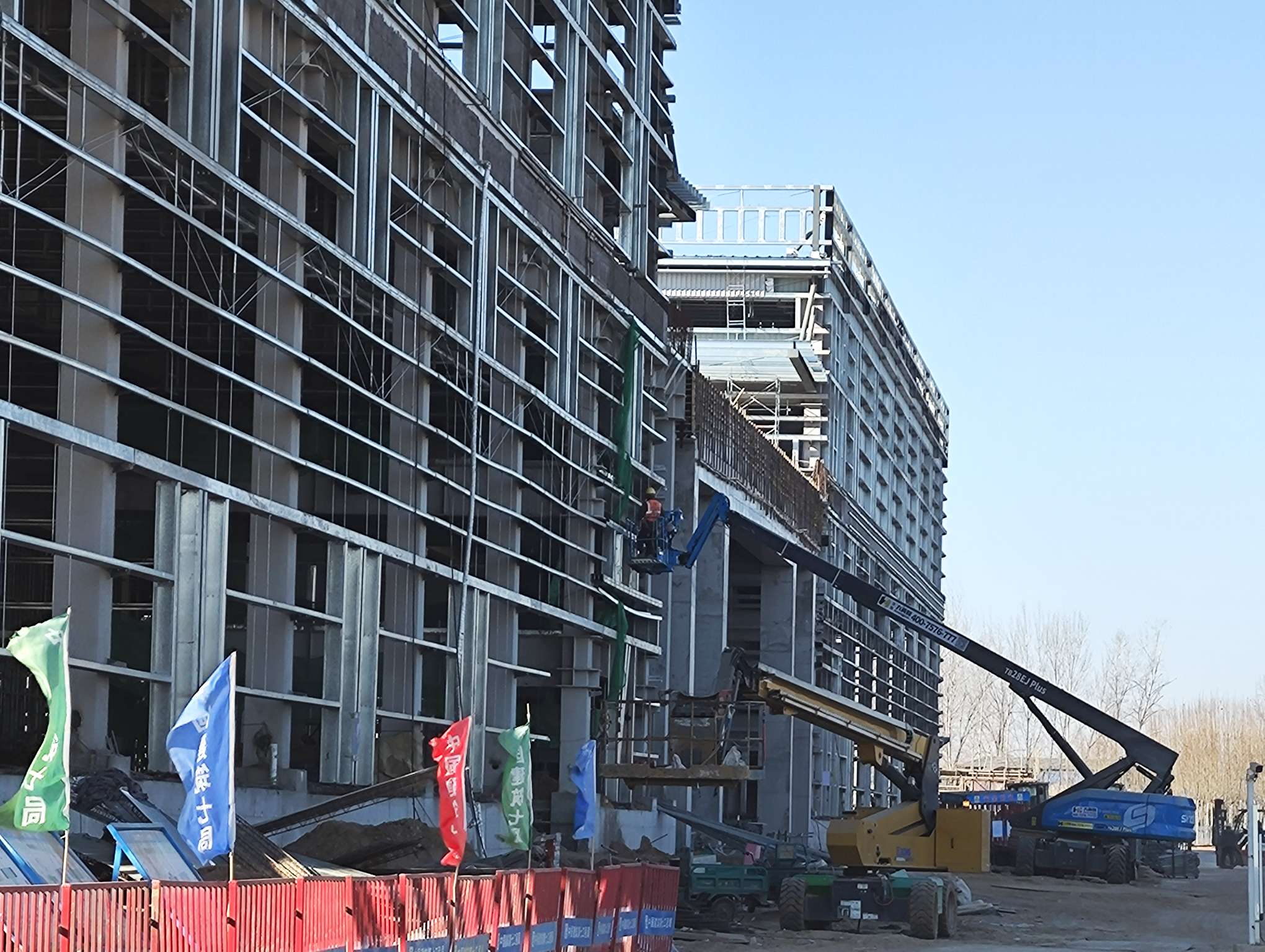 该项目建筑面积约7万平方米,工期仅有300天。为了争分夺秒抓进度,赵新颖和同事们吃住在现场,春节施工“不打烊”,在这个寒冷的冬日里演绎出火热的建设场面。